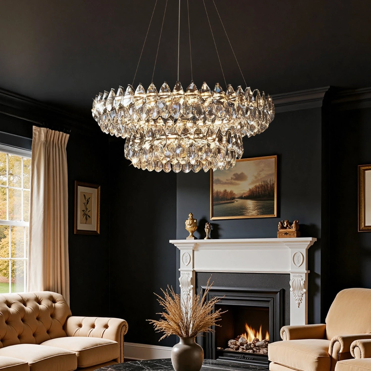 Crystal Dual Tier Water Drop Chandelier