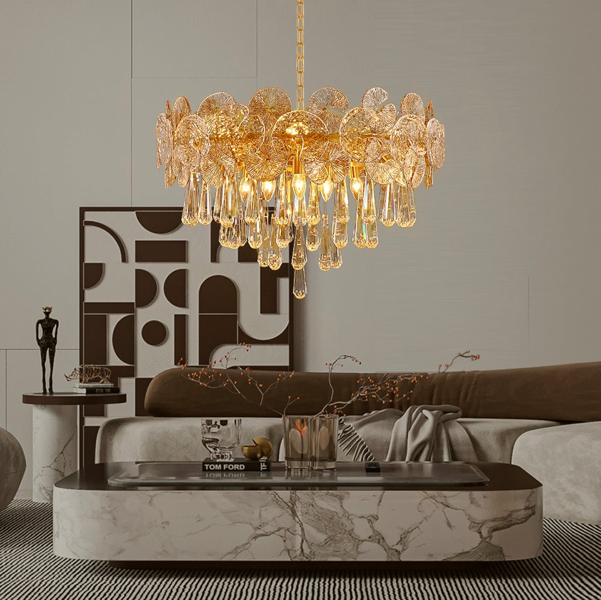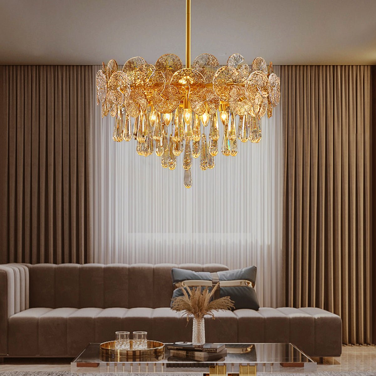 Modern Luxury Gold Glass Chandelier for Living Room